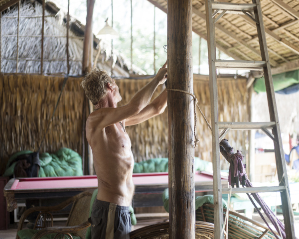Harrie from Amsterdam is in his early sixties and has been celebrating life at the expense of the state for the last twenty years. Since he started receiving incapacity benefits he's been loafing around, preferably in the tropics. He is currently in Sihanoukville, Cambodia, where he spends his days with sand between his toes and a can of beer in his hand.